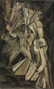 Akt, eine Treppe herabsteigend